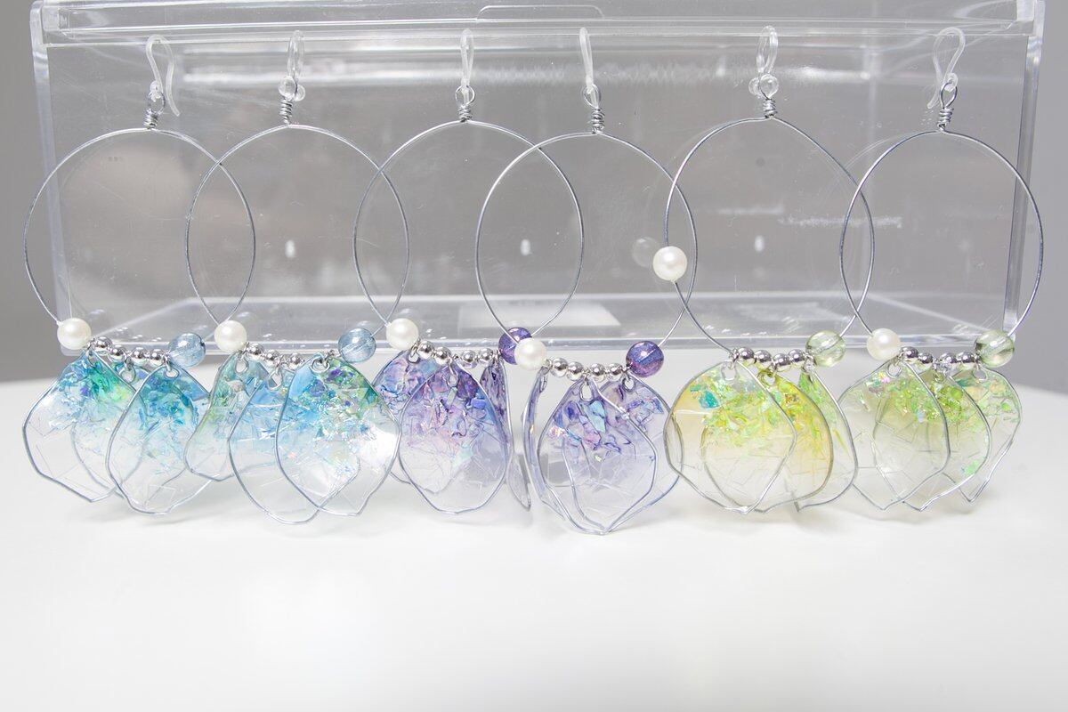 今年の新作の紫陽花の花びらを摘んで樹脂ピアス/樹脂ノンホールピアス仕様にしました。